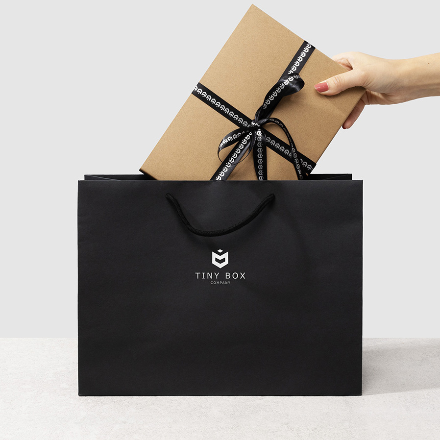 - Handles: Twisted paper = simple and recyclable. Ribbon/Rope handles = elevated feel.